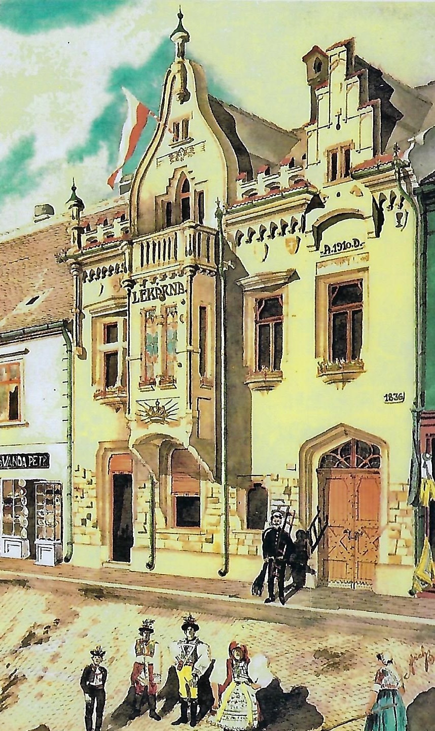Počátky lékárny U Zlaté koruny sahají do konce 17. století, přesně od roku 1786. V roce 1888 ji převzal dědeček současného majitele PhMr. František Sedláček, který ji vedl až do své smrti v roce 1925. Kromě lékárny zavedl výrobu později slavného antirevmatika "Linimentum mentholi chloroformiatum cum camphora", jenž se vyváželo do celého bývalého Rakouska-Uherska. PhMr. Sedláček obdržel za tento preparát stříbrnou medaili od tehdejšího ministerstva války. Po smrti PhMr. Sedláčka vedla lékárnu tzv. vdovským právem jeho manželka Evženie, vedoucím lékárny byl PhMr. Hirschman. Dcera lékárníka PhMr. Františka Sedláčka Marie Dlouhá absolvovala po ukončení studia farmacie na KU v Praze povinnou tříletou praxi v lékárně v Újezdu u Brna. Od roku 1937 vedla lékárnu U Zlaté koruny až do své smrti v roce 1949. Po její smrti vedla lékárnu PhMr. Barochová. V roce 1950 byla lékárna znárodněna. Po revoluci byl majetek navrácen rodině Dlouhých. V roce 1994 byla lékárna kompletně zrekonstruována. V červnu 1995 byla otevřena lékárna U nemocnice s nonstop provozem (provoz ukončen v listopadu 2019). V říjnu 2000 byla otevřena výdejna v Žarošicích. Na jaře 2001 byla otevřena výdejna ve Svatobořících - Mistříně. Jako poslední byla otevřena lékárna Na městečku Vracov v září 2011.